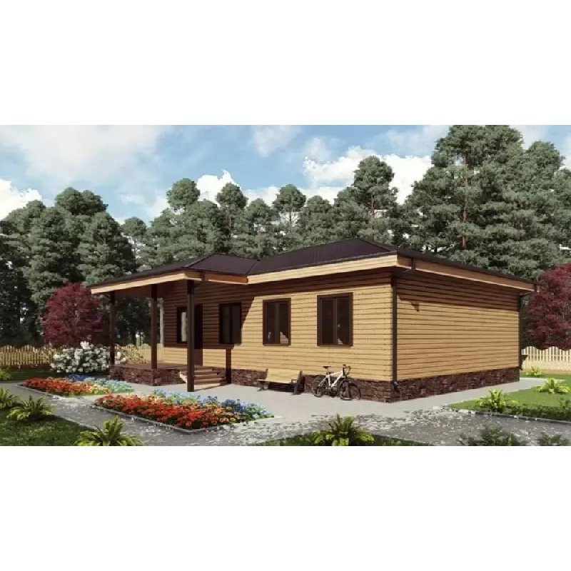 Проект «Хельма» - хороший одноэтажный дом для постоянного проживания каркасных с террасой. Площадь дома 106.7 м² с размерами 12*9 метра.